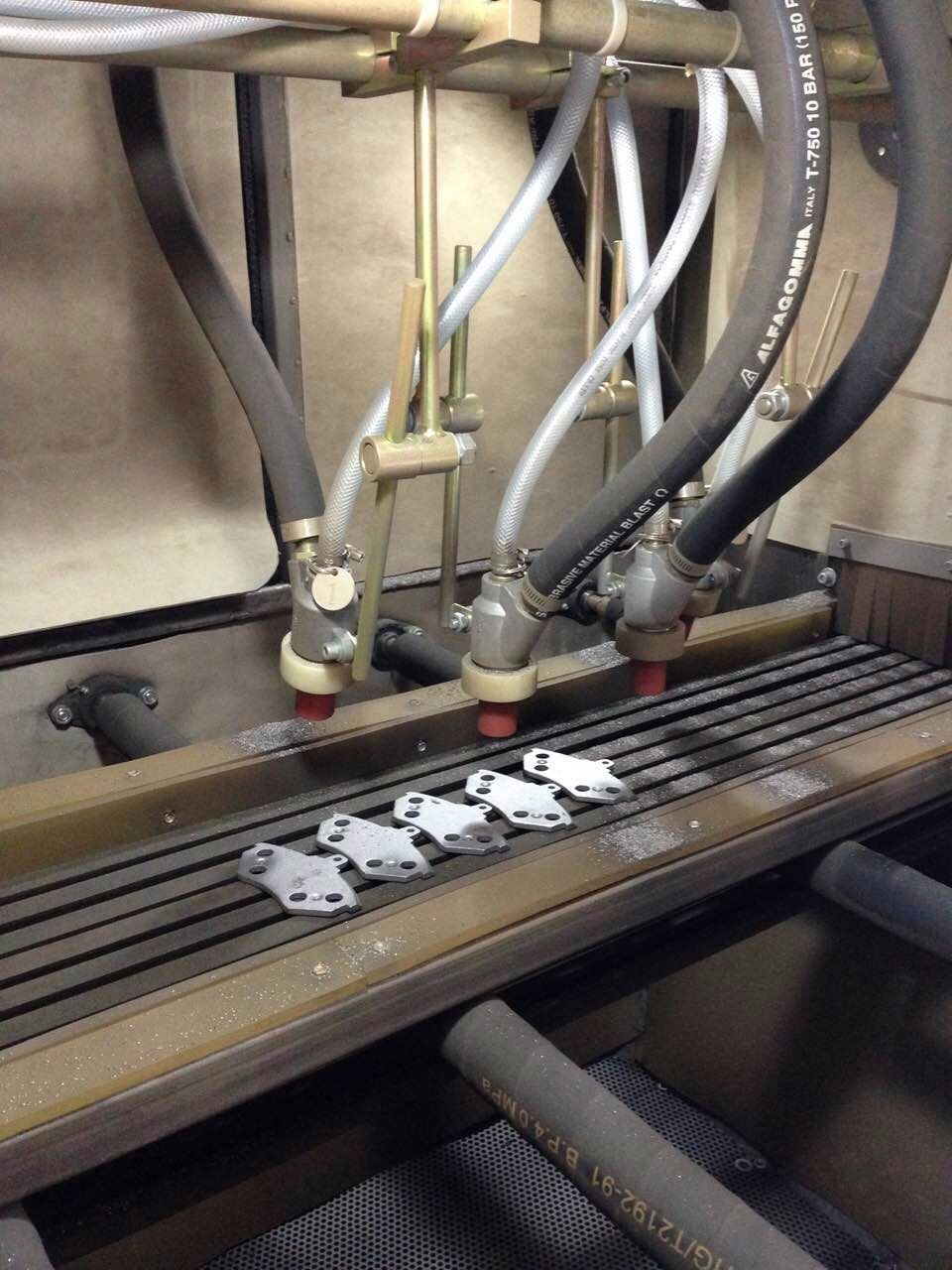 剎車片自動(dòng)噴砂機(jī)特點(diǎn) 1、剎車片自動(dòng)噴砂機(jī)設(shè)計(jì)新穎,結(jié)構(gòu)簡(jiǎn)單,操作方便,維修量低,使用壽命長(zhǎng)。 2、剎車片自動(dòng)噴砂機(jī)加工效能好,能源剎車片自動(dòng)噴砂機(jī)消耗低。 3、剎車片自動(dòng)噴砂機(jī)自動(dòng)回砂,旋風(fēng)分離器能將塵砂分離,降低磨料消耗。 剎車片自動(dòng)噴砂機(jī)適應(yīng)范圍: 電鍍:噴砂前預(yù)處理,提高表面附著力 清理:鑄造件、沖壓件、熱處理件去氧化皮、除銹、舊料翻新。 光飾和亞光:所有金屬制品、玻璃、塑膠、工藝品、首飾、眼鏡、鐘表等工件的表面處理