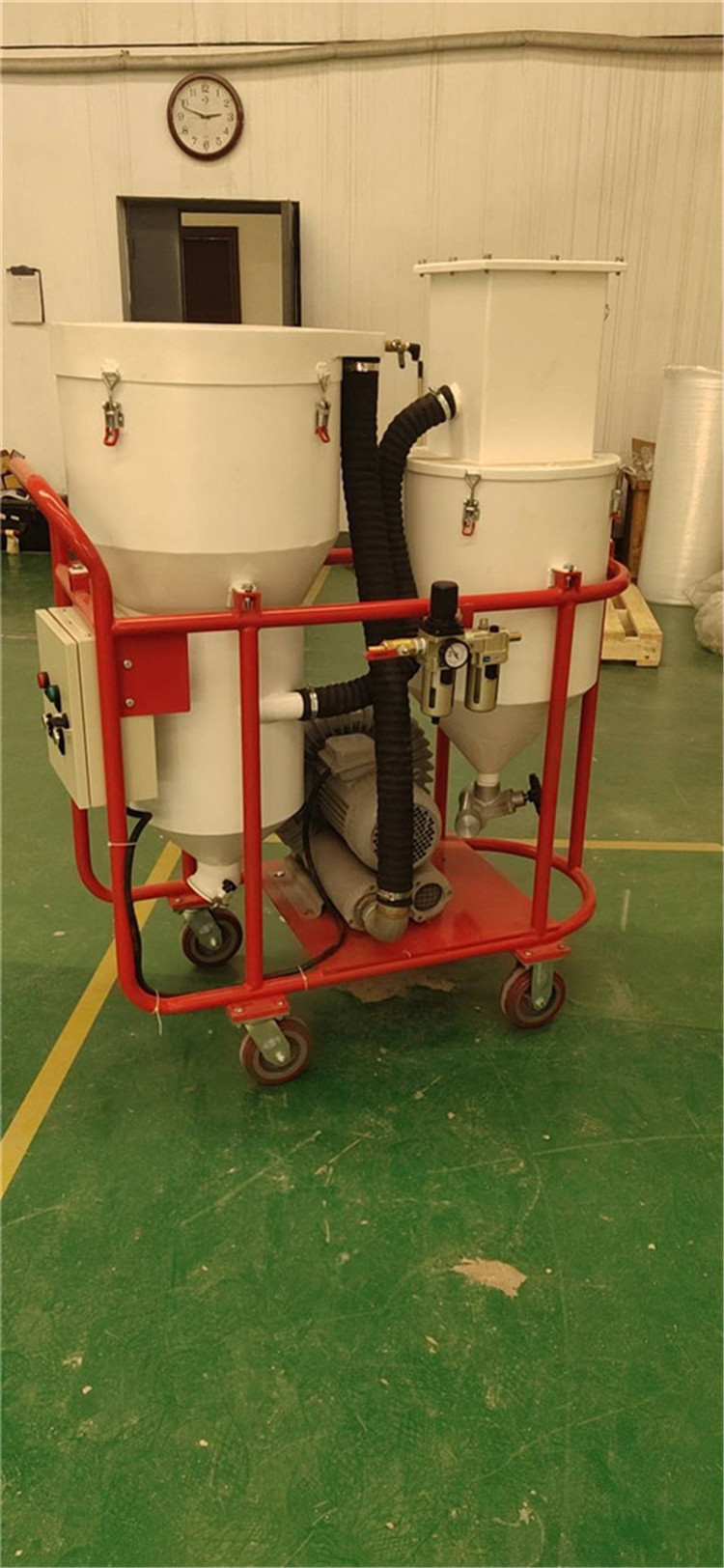 一、工作原理 壓縮空氣源進入進氣口,氣流調(diào)壓后從噴槍噴出,吸引磨料進入噴嘴,混合后形成高速磨料氣流打擊工件。 真空泵吸氣形成真空負壓,將噴出的磨料氣流吸回。磨料氣流在旋風(fēng)分離器內(nèi)分離,留下可用的磨料;粉塵氣流進入粉塵筒內(nèi)二次分離,粉塵被分離出來,通過濾清器干凈的空氣被吸入真空泵后排入大氣。 二、用途及特點 HXP-X(旋風(fēng)分離)吸射式回收循環(huán)噴砂機噴砂作業(yè)時沒有粉塵污染,保護了工人身體健康。他移動靈活,廣泛應(yīng)用于機械、船舶、橋梁、鐵路石油管道、鍋爐和港口建設(shè)等行業(yè)的鋼結(jié)構(gòu)表面除銹、表面強化;以及皮革、服裝、玻璃、石材等表面雕刻;交通線路改制施工及噴花裝飾性處理等 三、技術(shù)參數(shù), 工作壓力: 0.6~0.7MPa,壓力可調(diào) 磨料種類:金剛砂、棕剛玉、鐵丸、銅礦渣、塑料丸等 表面處理等級:Sa2.5~3 耗氣量:2---3m3/min 磨料粒度:16目至100目 噴砂效率:4~10m3/h 功率:3kw 外形尺寸:1.22*0.6*1.55米